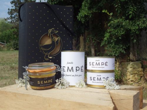 1 foie gras entier de canard 125g + 1 magret fourré au foie gras + 1 Pâté de canard au foie gras 190g + 1 Rillettes de canard 190g